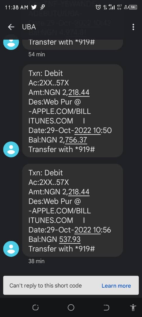 I transferred funds to my Apple ID from my personal bank Account my Apple ID was not credited and I got debit from bank.Now my bank wants Apple to prove they did not take the funds .How do I get this done because I need my money back because I got a card declined from Apple and the purchase was never recorded in my purchase history as previously done.The amount debit was 2218 which was debit twice from below it can be seen my balance was 500 if it was credit it should be 4500 because I did the transaction twice and debit twice.I need help from Apple to enable the bank refund my money