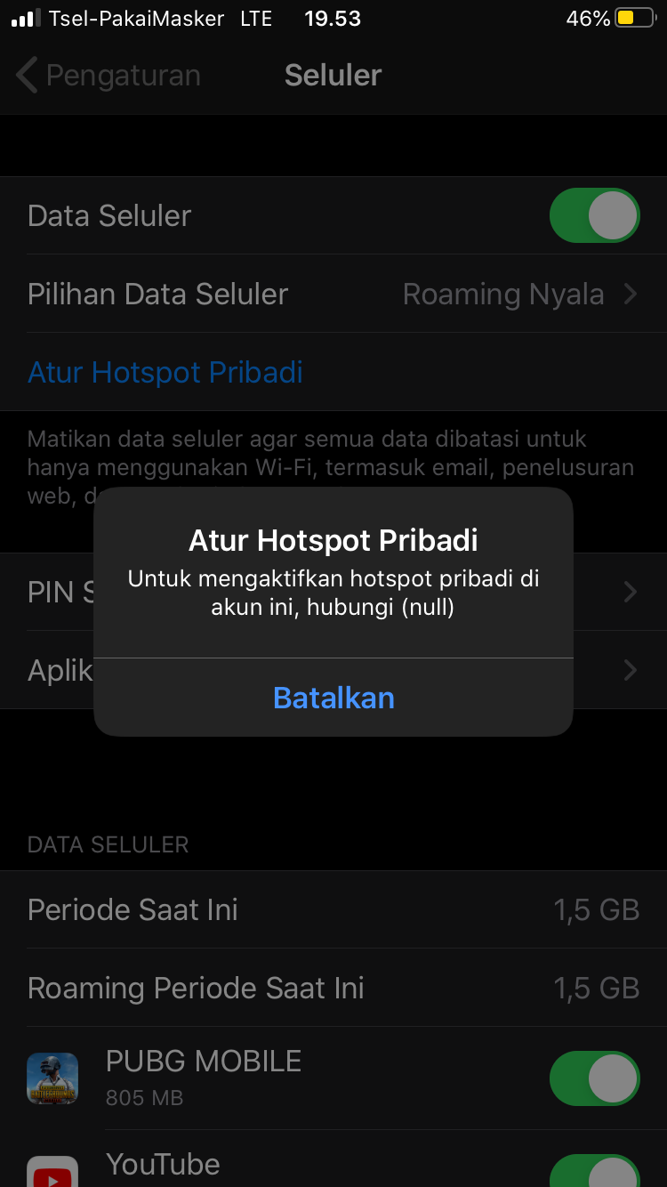 why doesn't my portable hotspot appear in general and when I want to turn on the hotspot a notification appears (if you want to activate the portable hotspot on this account please contact (null)