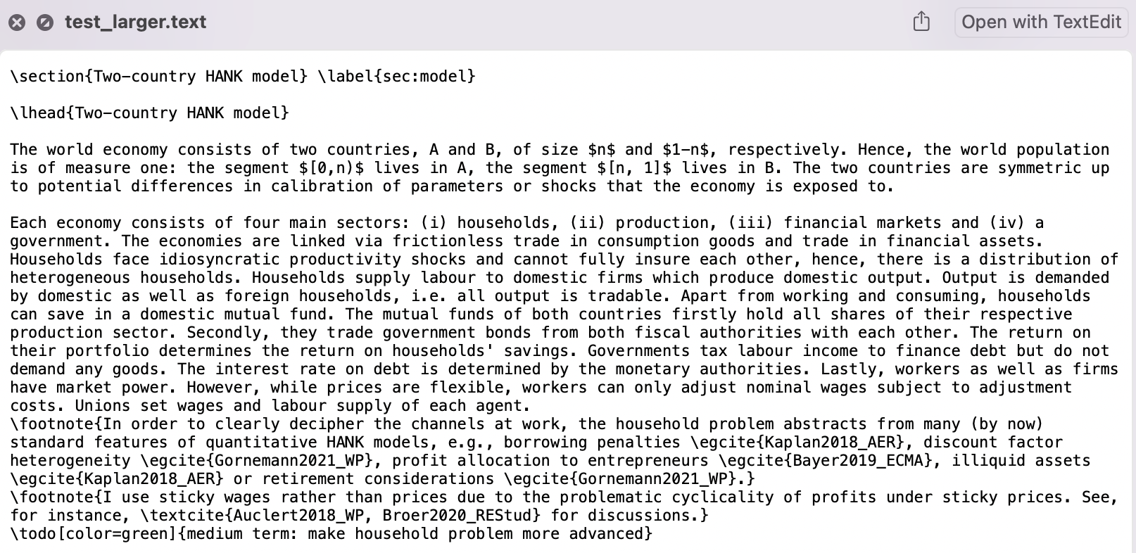 and it can be read with any text editor or code editor: BBEdit, TextMate, Alpha, even TextEdit, as well as typesetting programs like TeXStudio to TeXShop. The problem is that Ventura no longer assigns text-file status to the *.tex extension, so QuickLook gets confused.