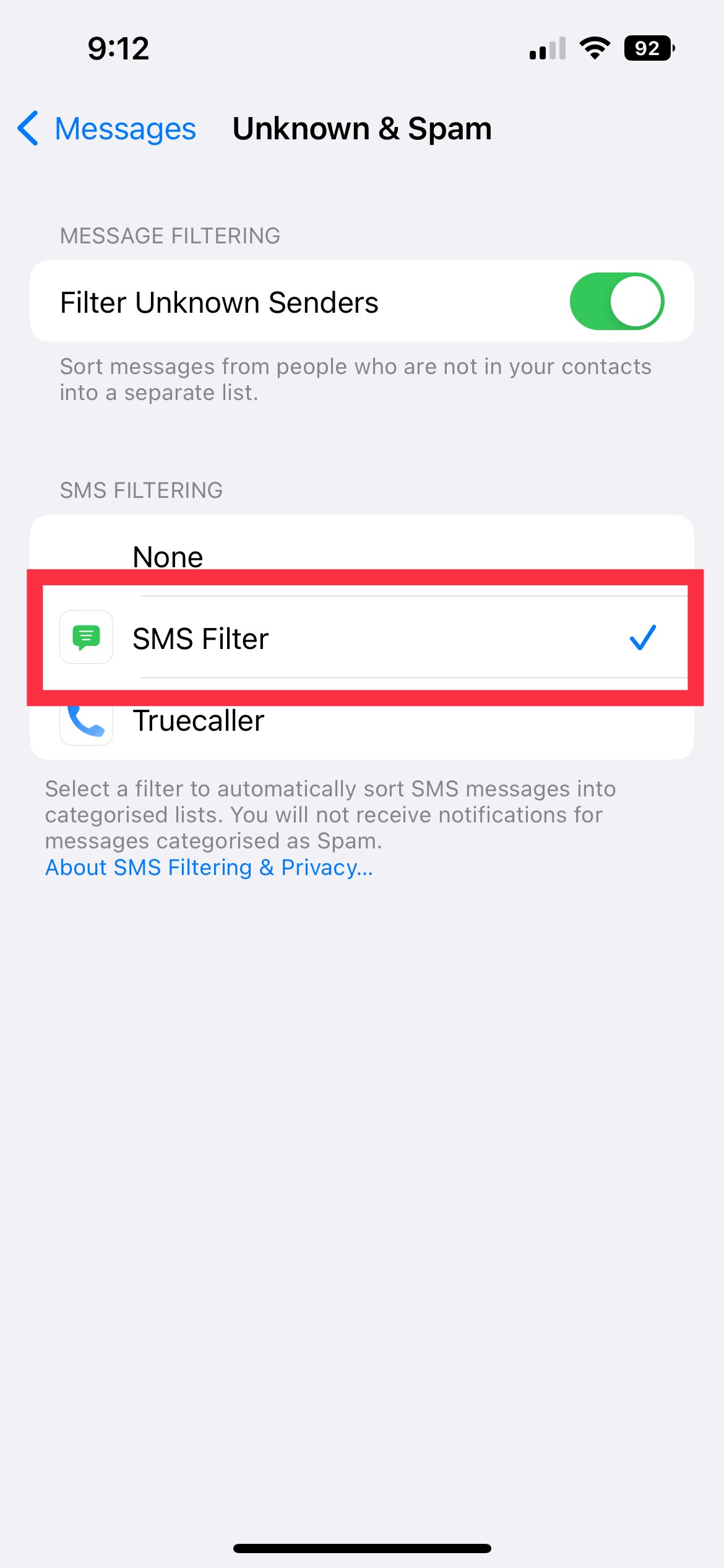 I have upgraded my iPhone from 6S to 13pro, everything worked fine for few weeks but now the SMS filter has stopped working. I have even toggled the Unknown & Spam option in the Settings, nothing seems to work.