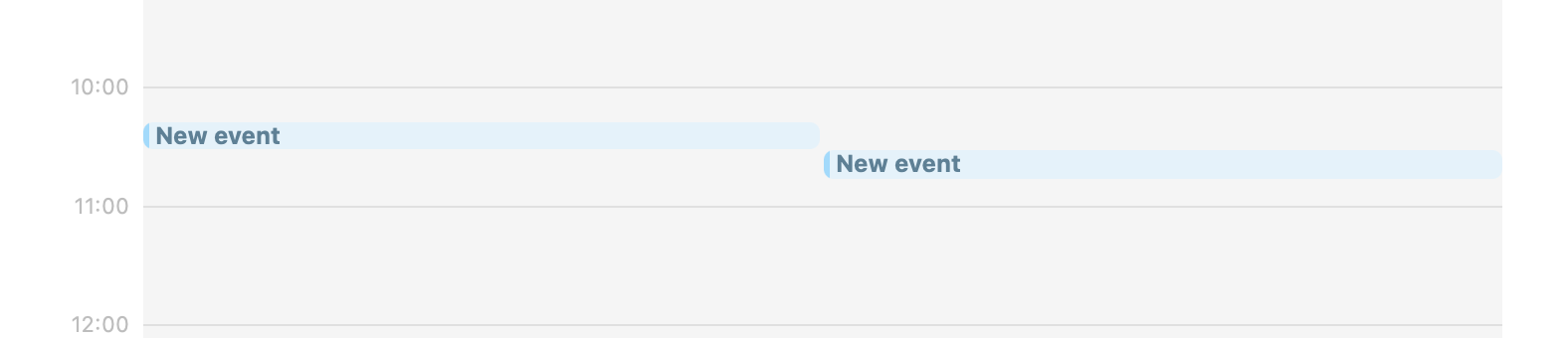 I have two events in my calendar: the first one' time is from 10:15 to 10:30, the second' is from 10:30 to 10:45. I want to see them in one stack – one above another with full time slot box width.