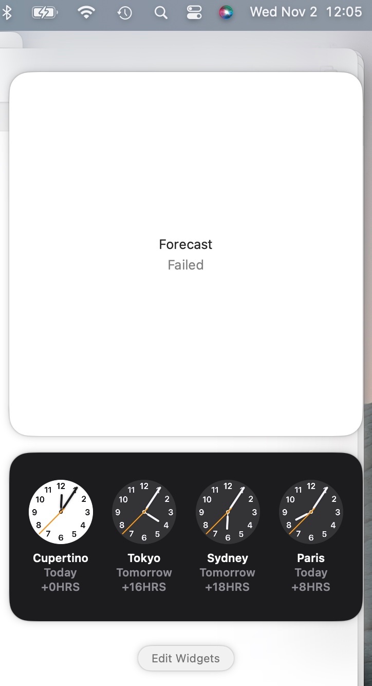 Forecast Failed message in Weather Widget on MacOS Ventura