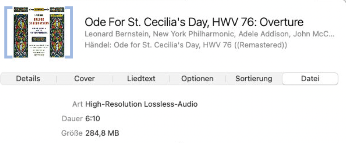 It's also better to disable loading "Dolby Atmos" in Music preferences. A high res file is not loading if it's enabled and the music has Dolby Atmos concurrently, then the DA file would be saved.