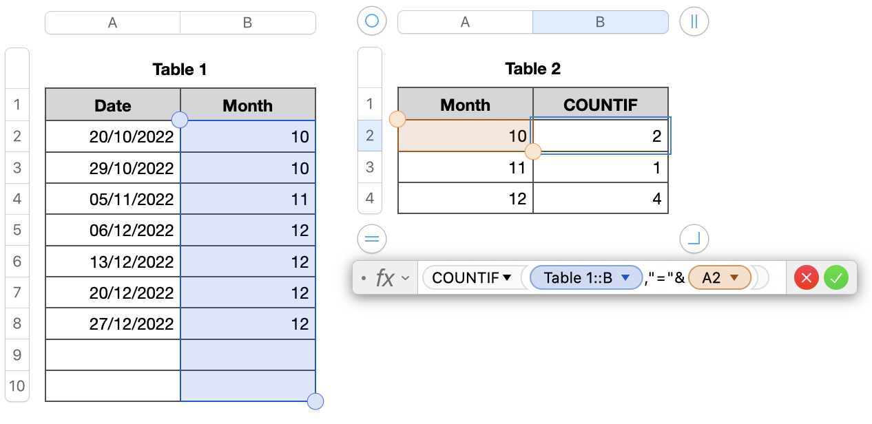 I want to create a statistics in apple numbers and I need to count rows for each month.