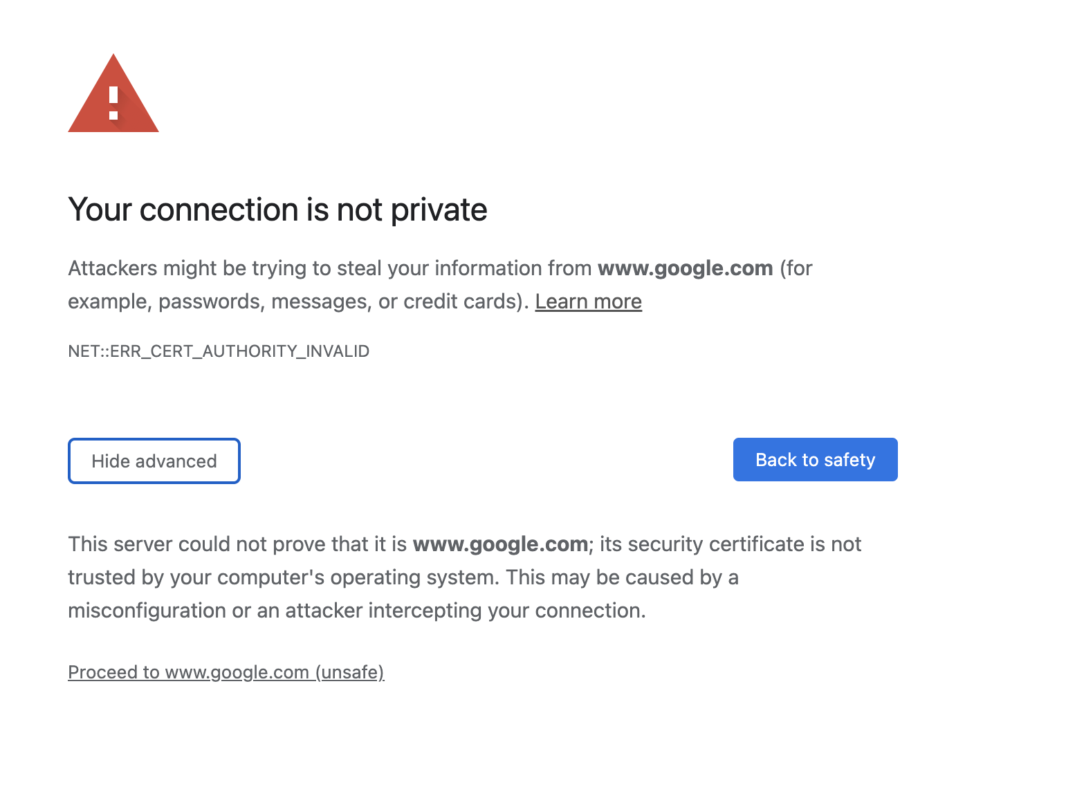 Your connection is not private: NET::ERR_CERT_AUTHORITY_INVALID