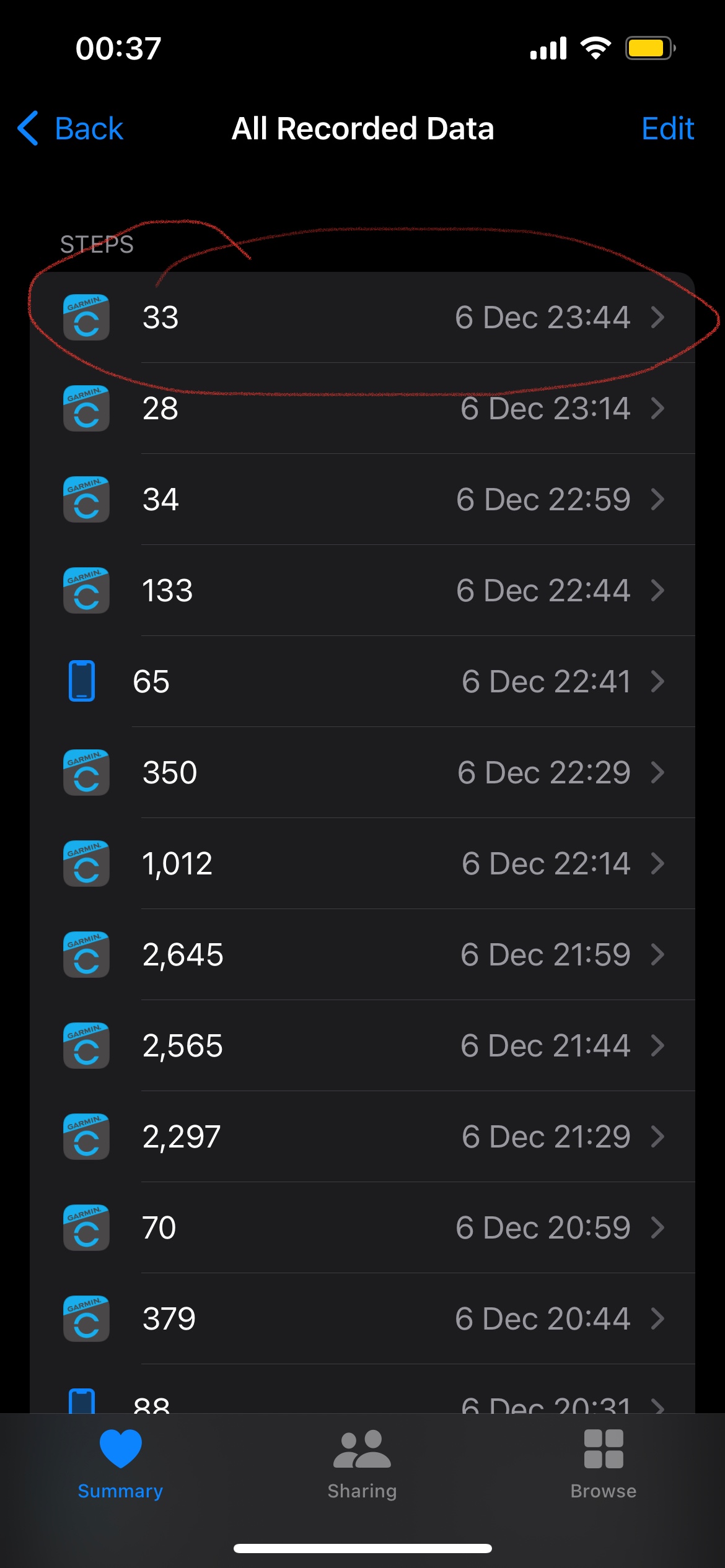 there is about a 15 minute gap in the data sent from garmin to apple health; the last step count taken from garmin for the 9th was taken at around 11:45pm and the next was around 12:15am on the 10th. all the step data from before 11:45pm is there, and all the data from 12am onwards is there too. it’s as if the sync at 12:15am has just sent data from that day, not the 15 minutes from the day before that hadn’t been done. does anyone know why there is a gap in the data and how to fix it? the apps are obviously syncing because the step count before and after the gap is the same on both apps; there’s just a period where garmin didn’t send and/or apple health didn’t collect data and i’m not sure why.
