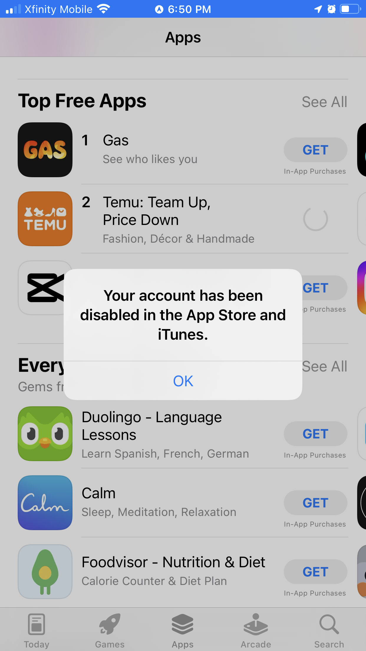 I couldn’t update my apps, is showing my account has been disable from App Store and iTunes