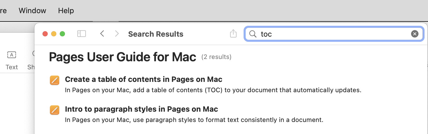If you have used Paragraph styles and Heading styles in your document, click the Help menu in the menu bar at the top of your document, and choose Pages help.