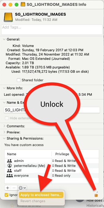 Tick Ignore ownership of this volume
