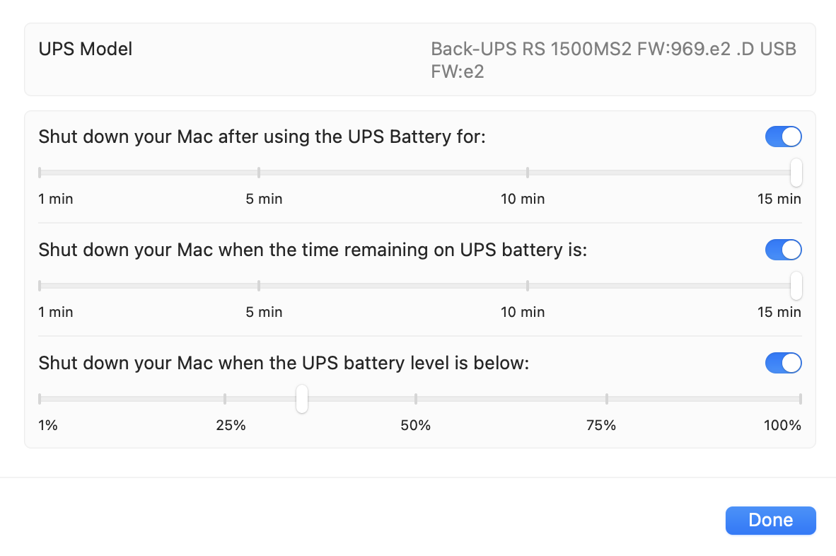 I've had two APC UPS battery-backup units for a few years, but the company that makes these units (Schneider Electronics) does not make a Mac-friendly software package for these. Does anyone know of a Mac-friendly company that does?
