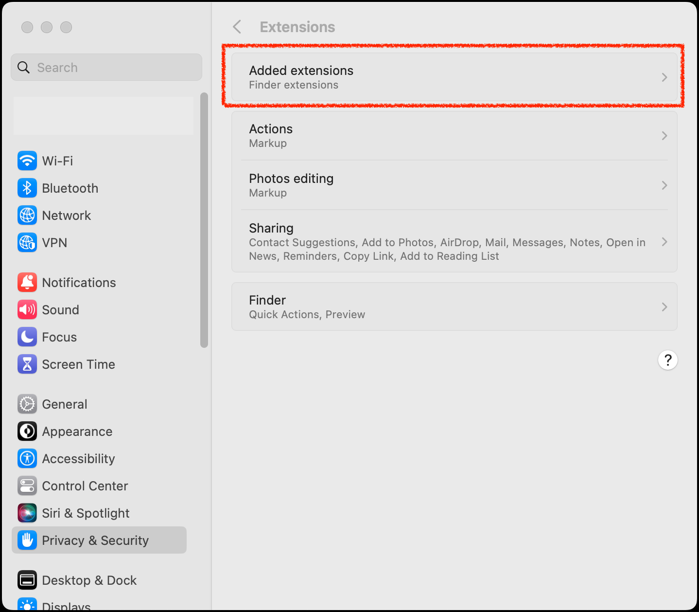 I am not able to see "Finder Extensions" under System Settings > Privacy & Security > Extensions.