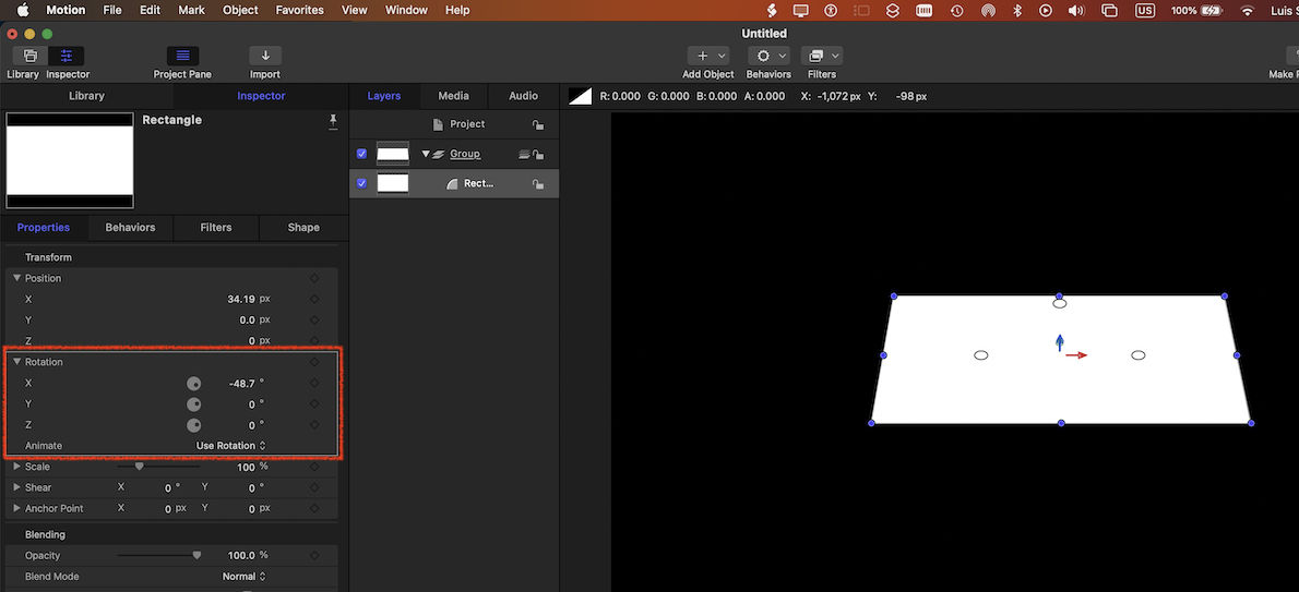 So far so good. However, I'd like to animate the motion from picture 1 to picture 2. I cannot for the life of me find a keyframe button for the button in picture 3.