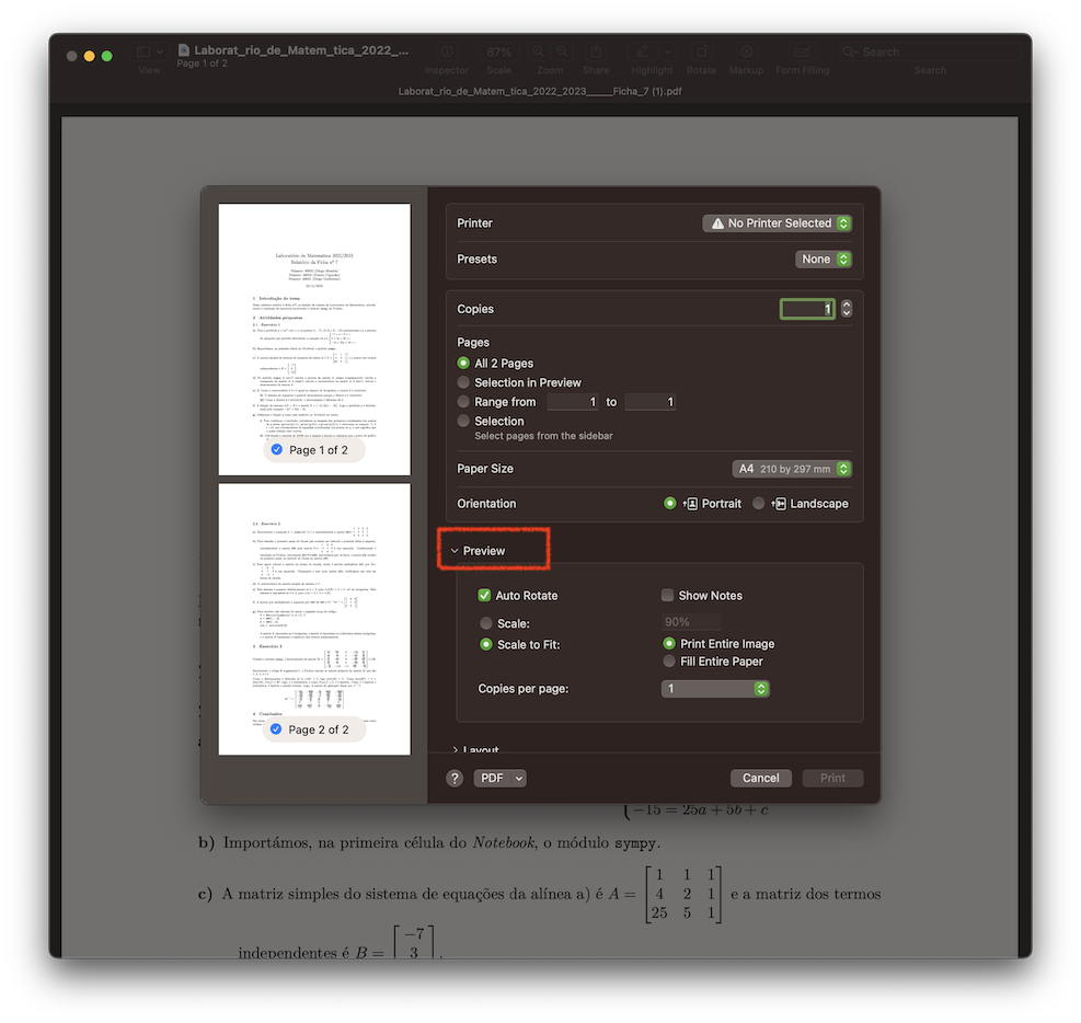 When the Print options screen is open that is the only box I can work with, and "Preview options" is not one of the drop down menu options, perhaps you can guide me to the Preview option list you refer to, thanks.