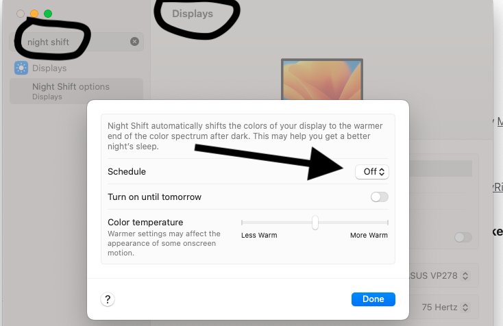 reveal anchor "displaysNightShiftTab" of pane id "com.apple.preference.displays"