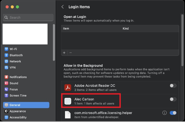 Note that this particular filename was just one result that showed up in one particular EtreCheck report. From other searches I found, Alec Carlson has been a developer for Smith Micro since 2003 at least, if not earlier. So the file on your computer might have a different name.