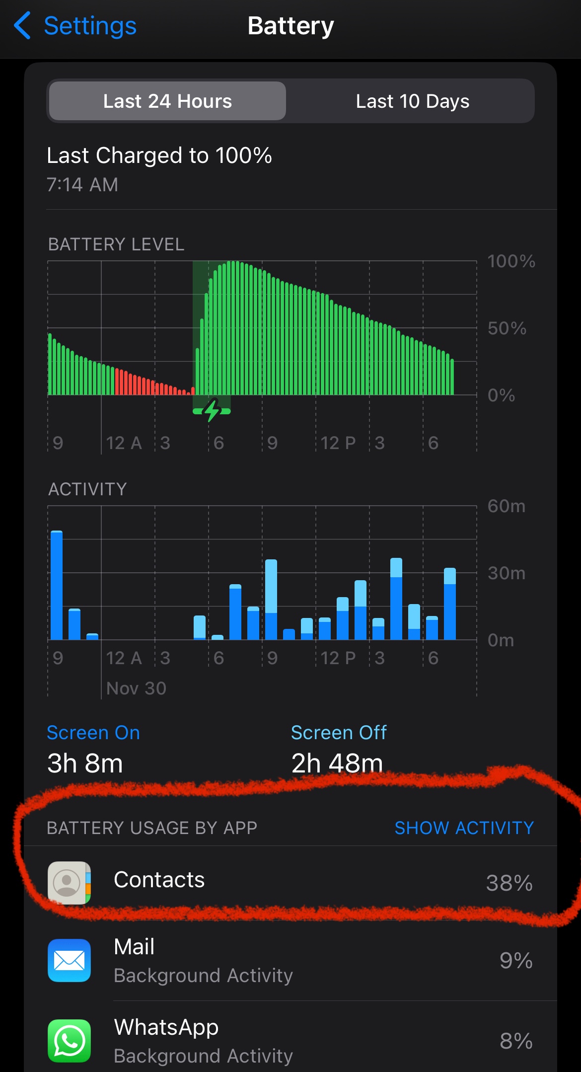 8.Done, I check the cellular data consume of Contacts in my iPhone and it only reaches 29.1 mb 24 hours have passed and the consumption remains at 29.1 mb and the battery after charging it 100% after 10 hours at night only to 97% 👍
