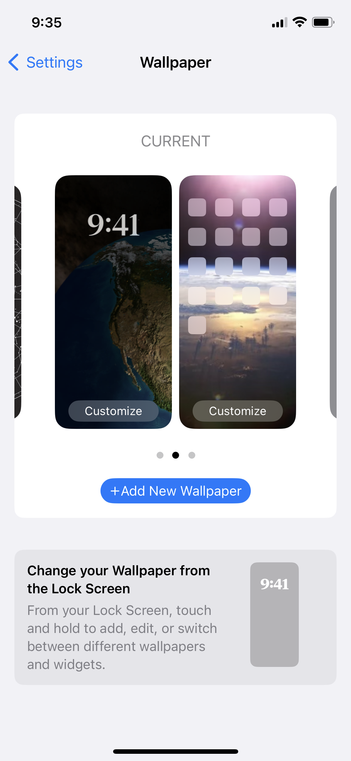 Tap Home Screen >> Select background from Menu: 'Pair, Colour, Gradient, Photos' to Customise Home Screen >> Hit Save (at top right of screen)