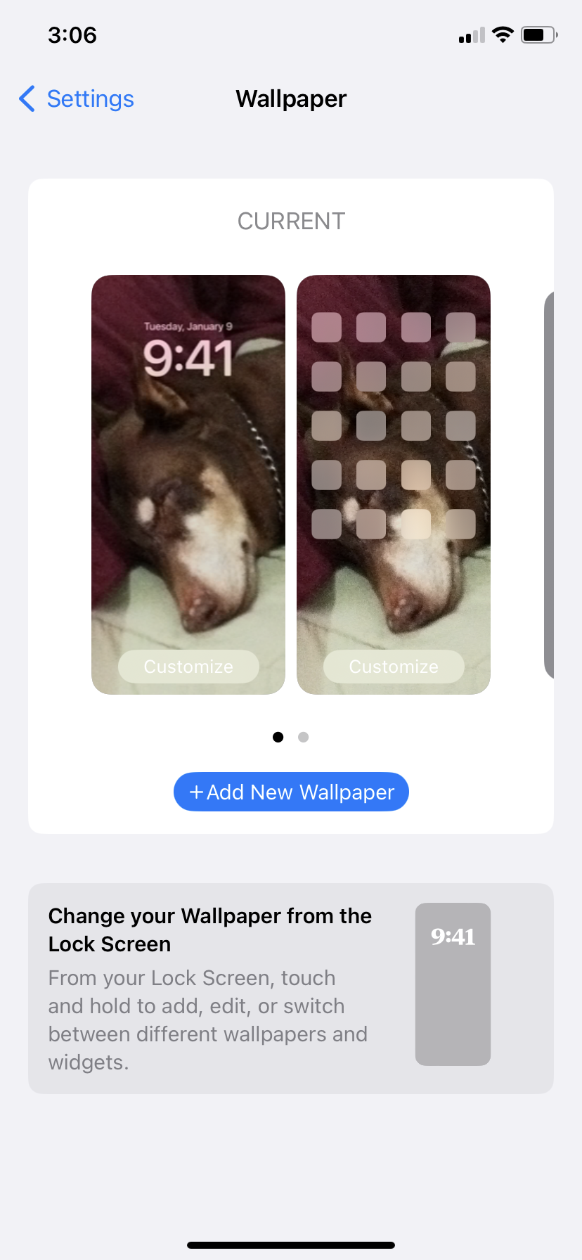 Tap Home Screen >> Select background from Menu: 'Pair, Colour, Gradient, Photos' to Customise Home Screen >> Hit Save (at top right of screen)