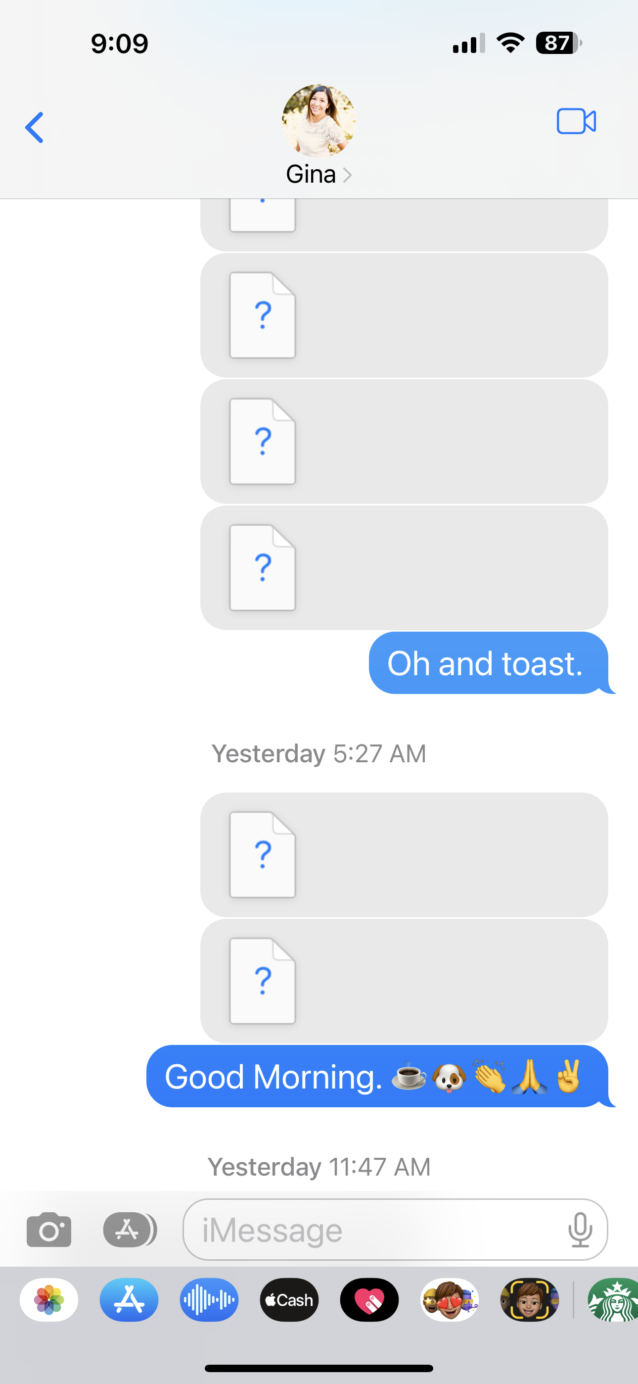 We understand you're unable to view photos in the Messages app, as it displays a question mark. We'll be happy to help.