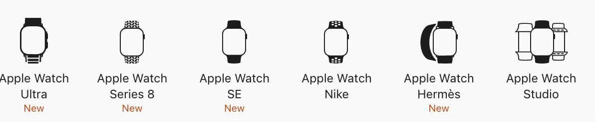 Go to Watch - Apple and you will find if you tap on Watch, it will show you this list on the top portion of the page. This is what is available currently.
