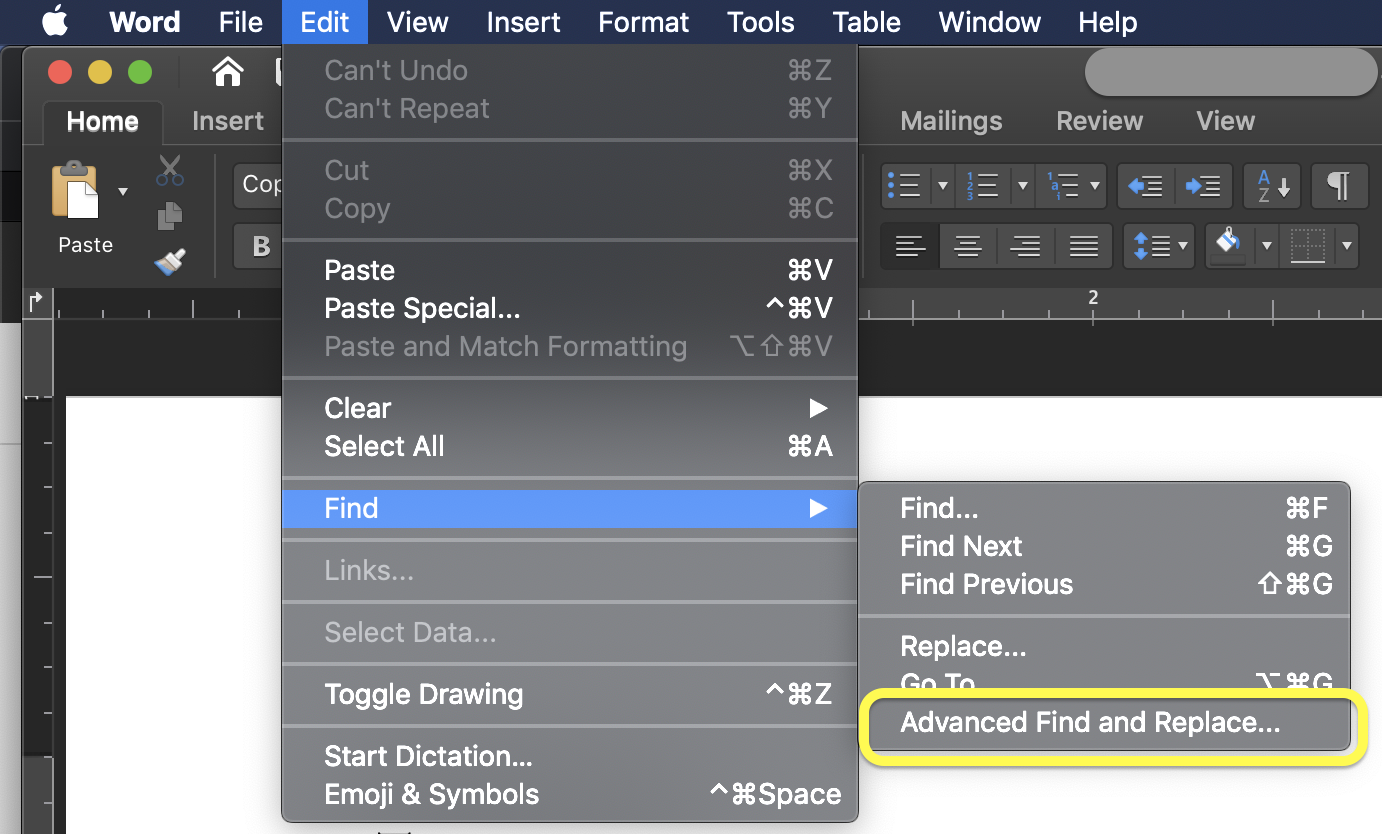 TEXT: Is there a shortcut for find and replace in Word 2016? I'm using a Mac.