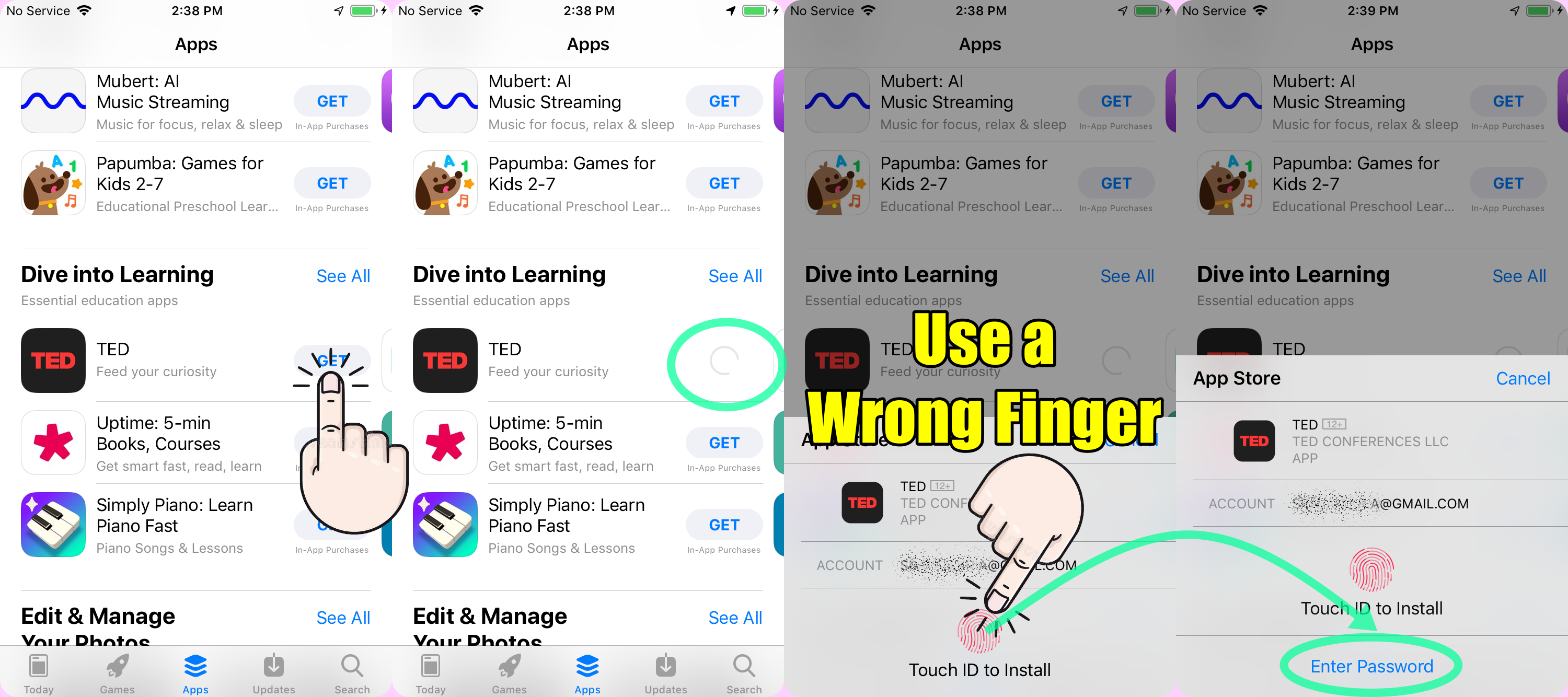 Downloading apps without fingerprint