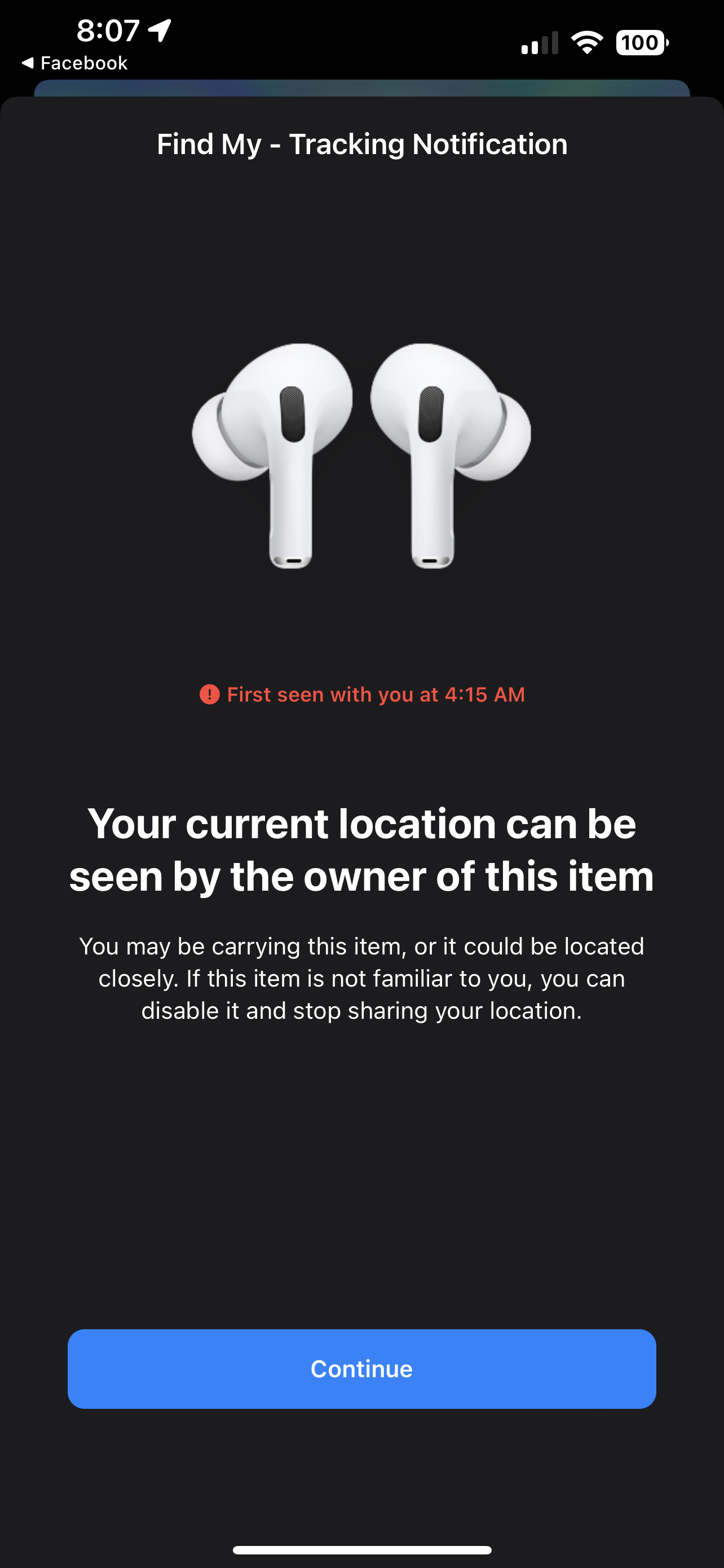 Hello, i got a notification that someone can see my location and that i have someone's airpods, but i don't have anything on me. Little bit creepy and weird