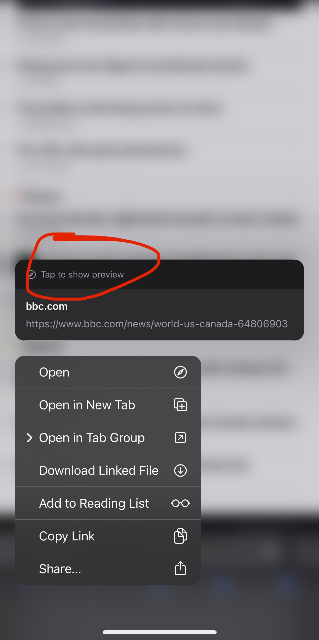 “Open Safari, long press any link, select option two hide link preview, top right I think”