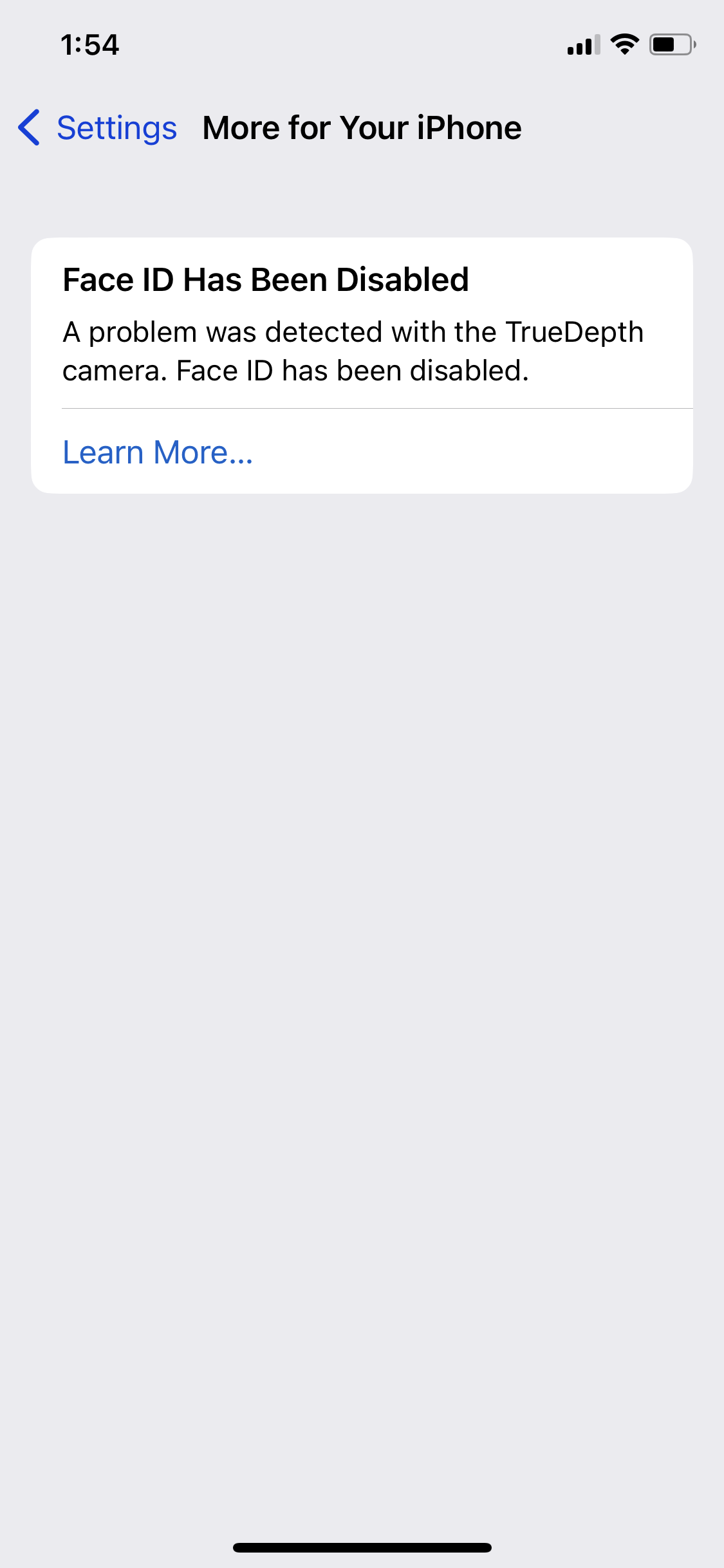 My Face ID not working below mentioned face id has been message showing please help ‘’ face id has been disabled truedepth camera‘’
