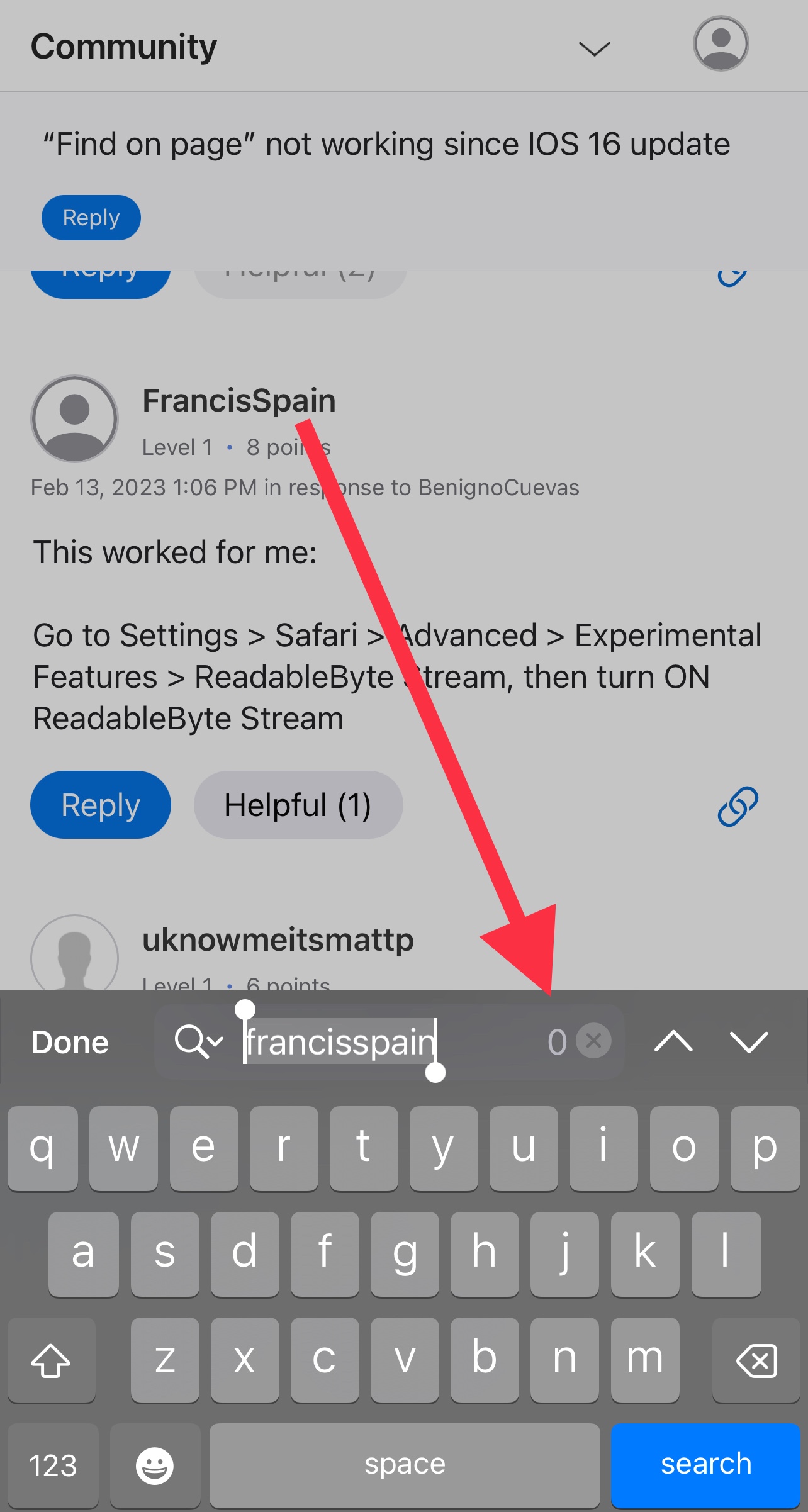 Can you please provide a definitive solution to the problem. Find on page is like the control+f on iPhone. Normally it always worked but it’s not working now.