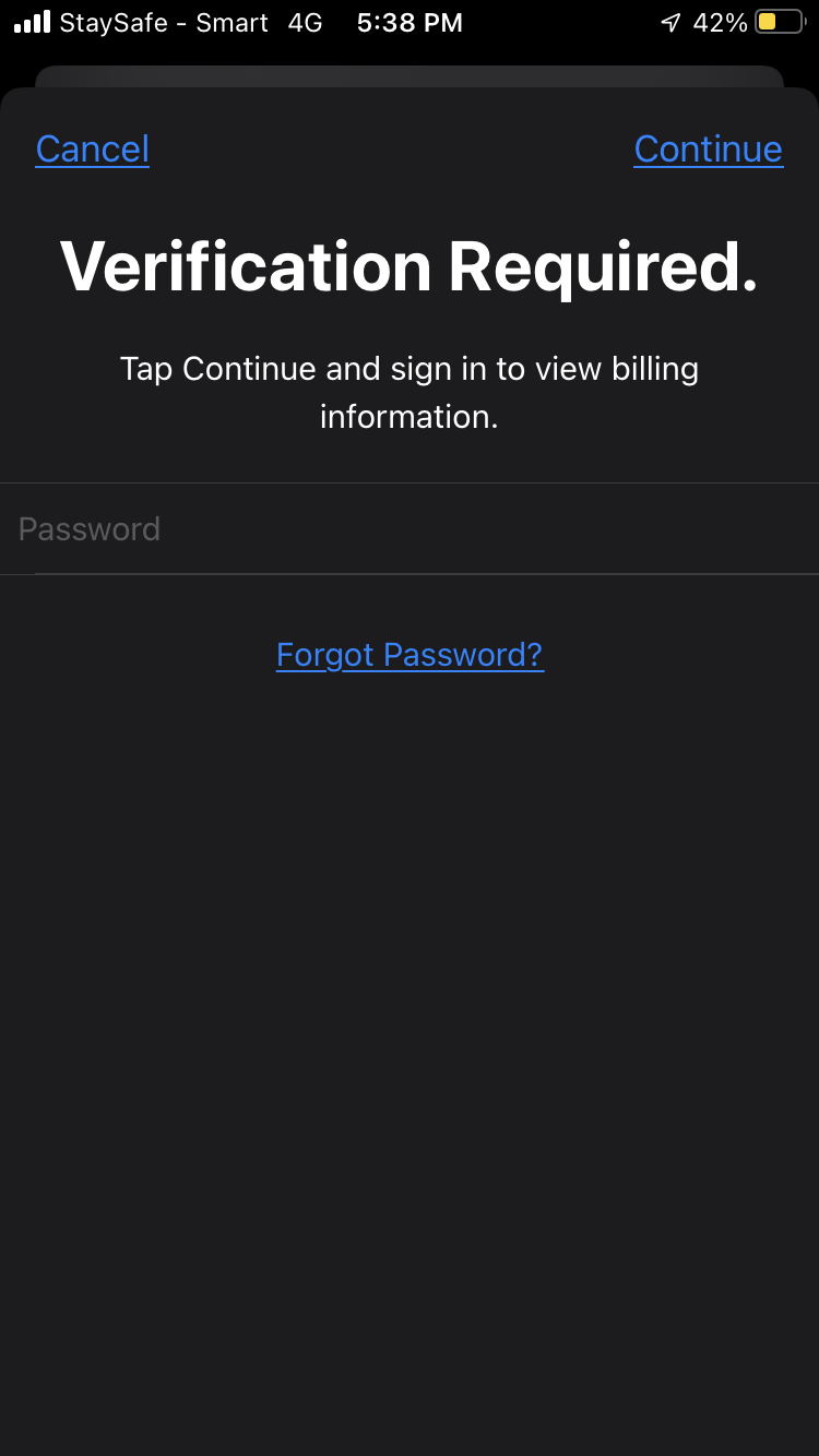 You need to tap Continue and sign in to view your billing information.