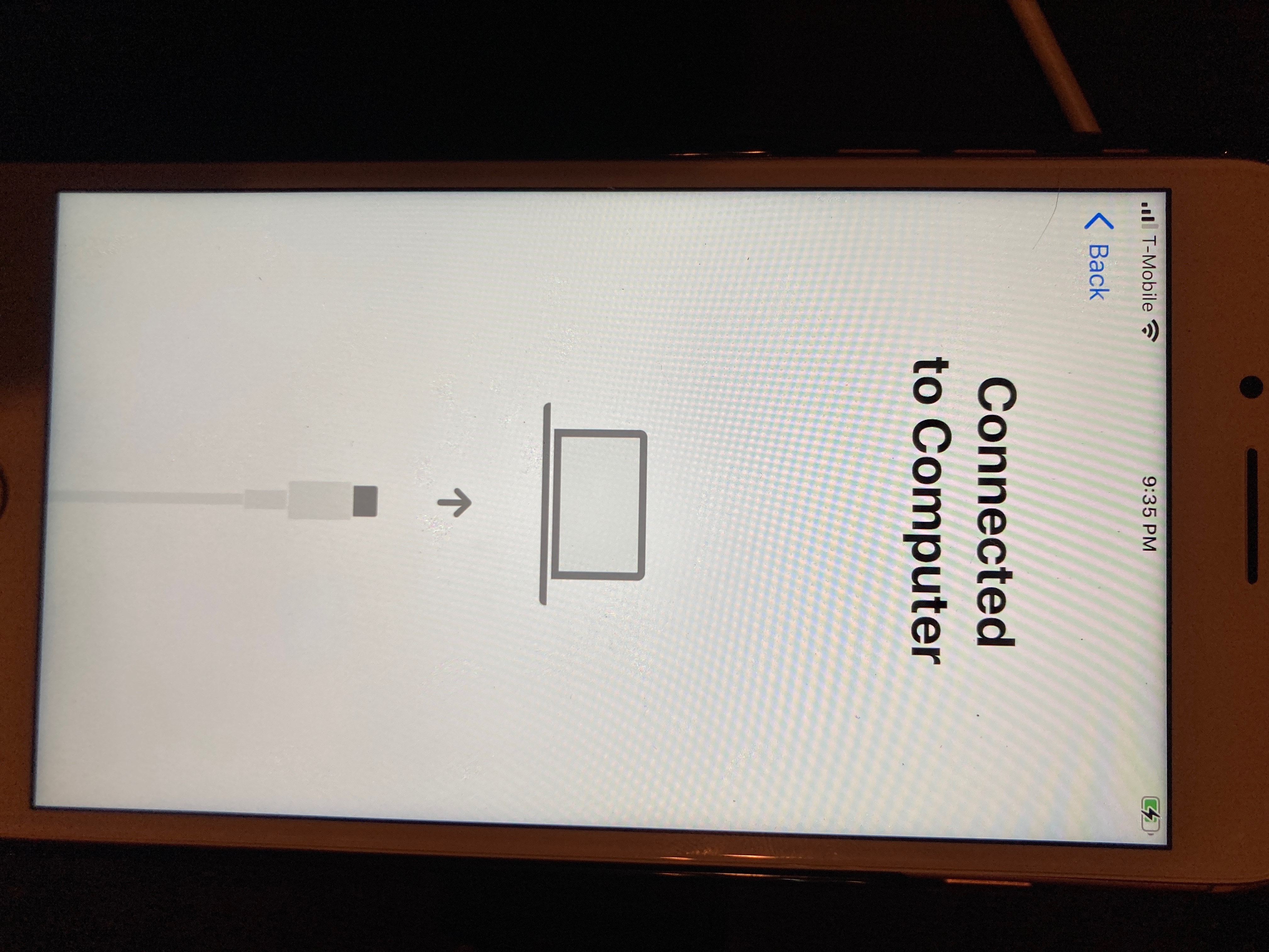 My iPhone 8 was disabled due to a broken screen. I replaced it and tried restoring but my screen is stuck on connected to computer. It won't go past this screen