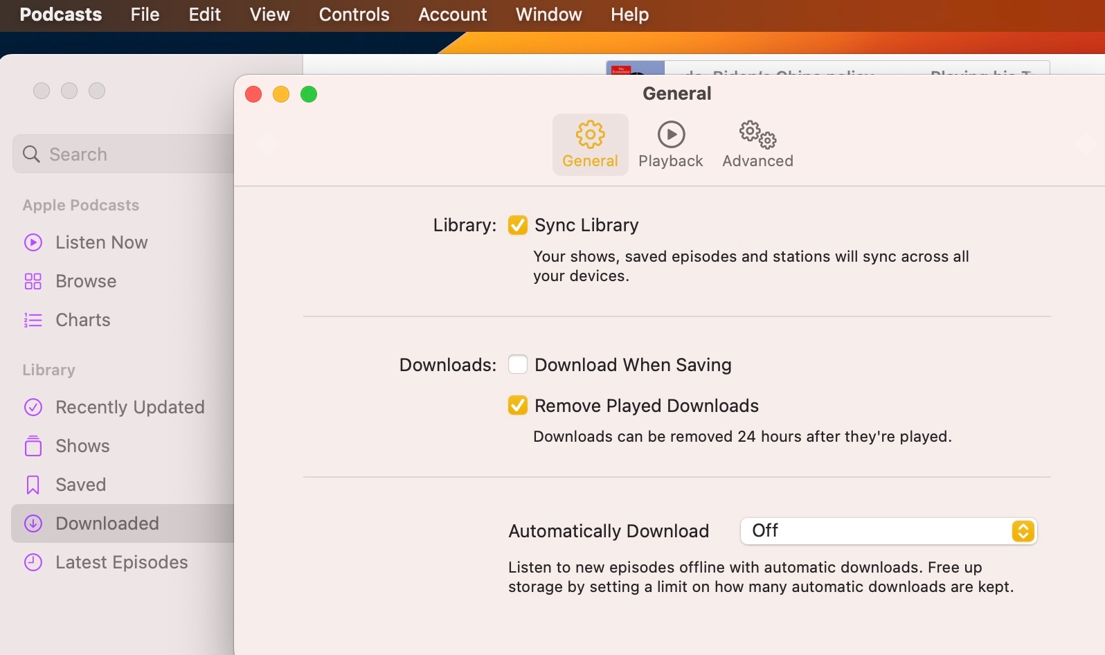 I changed the settings for the podcast app so that no episodes are downloaded to my Macbook Pro but thats not working. In fact all the episodes for all the podcasts which Im following are being downloaded taking huge amount of space on my hard drive.
