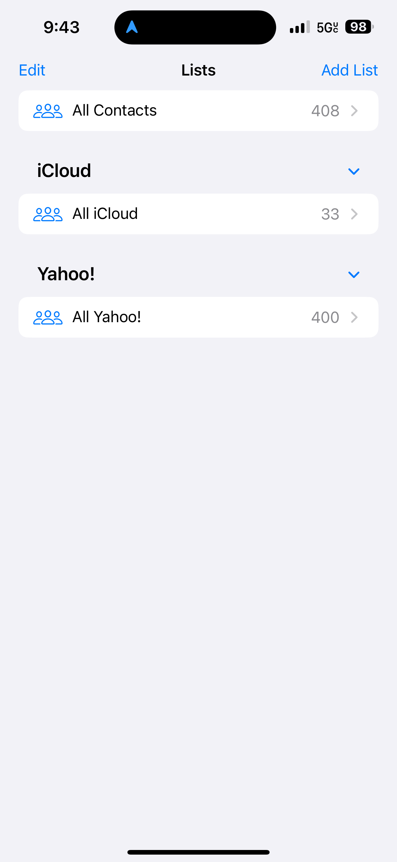 . . . . . See contacts screen with iCloud at the top. It's ok.