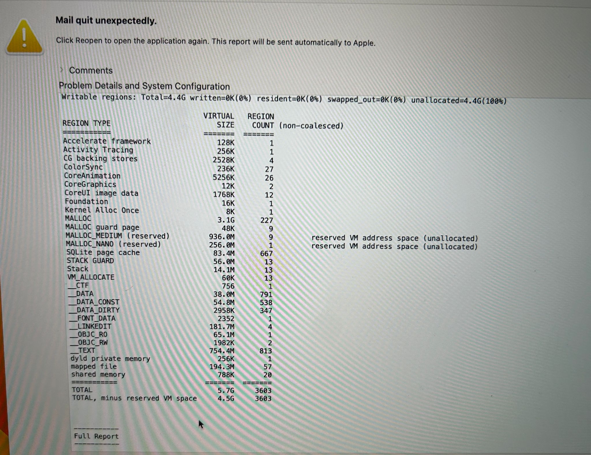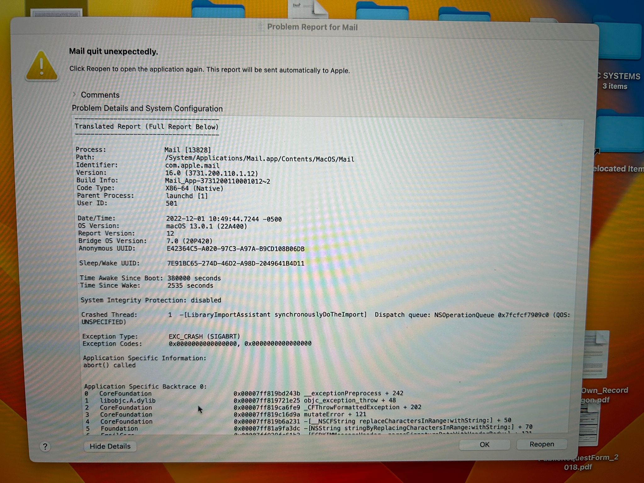 I'm importing my emails after updating to Ventura, after a few minutes mail crashes and these are the messages.