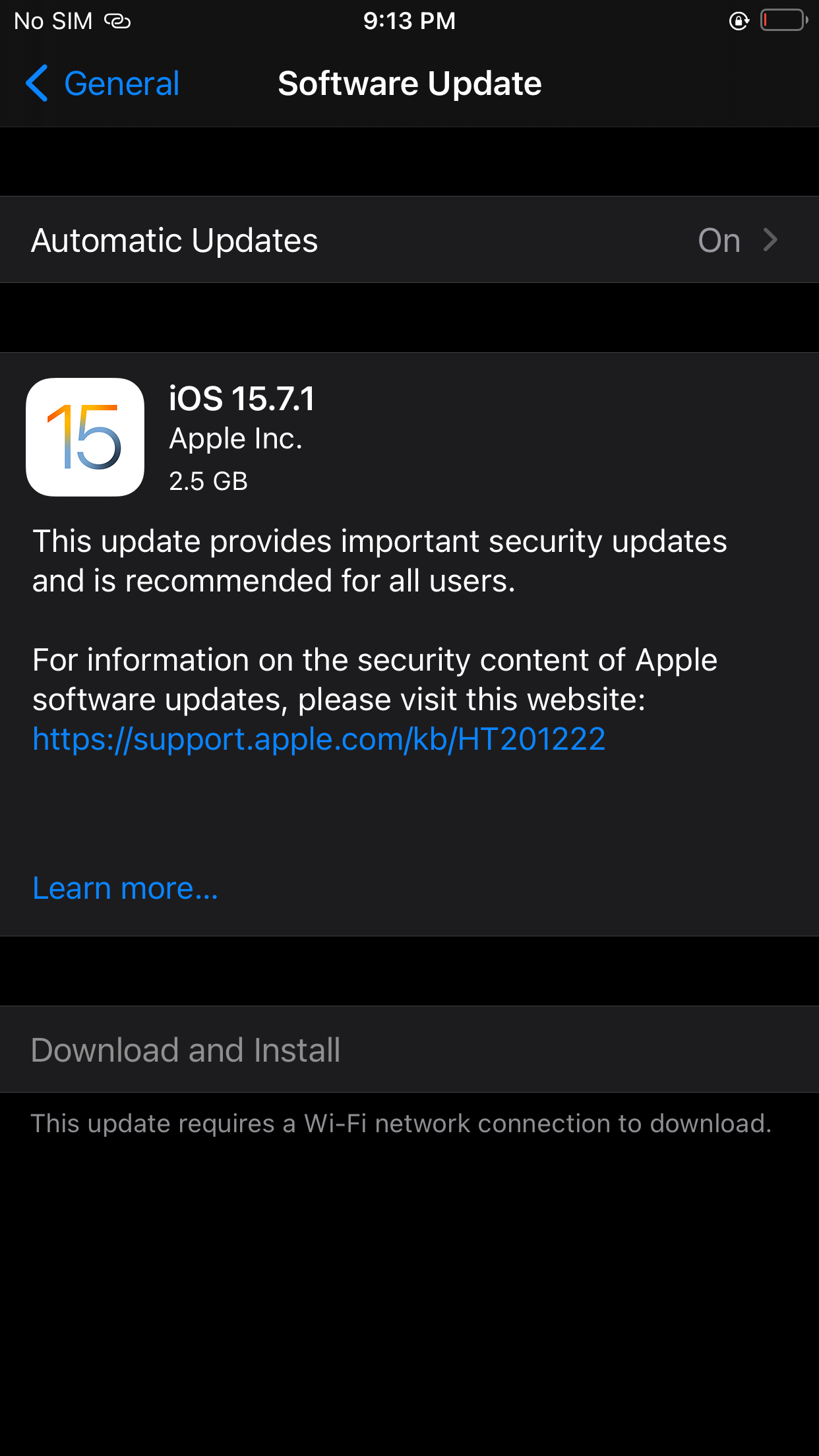 To perform an update procedure wirelessly, you need to connect your device to a reliable and fast Wifi Network with internet access (no cellular data, unless you use a 5G network, no personal hotspot on your device, no VPN connections, no low power mode are admitted). AND I suggest that you keep the device plugged into power during the whole update process.