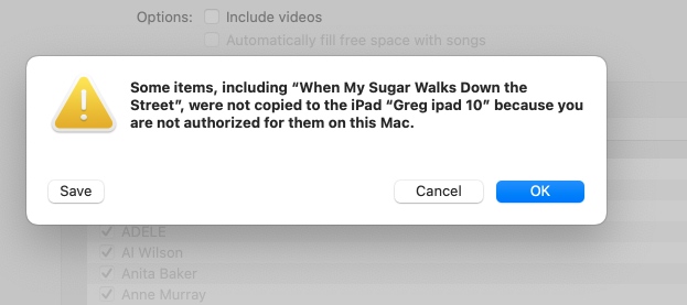 Can someone help with this notice I get on my Mac, seems a lot of my music will not copy to my Ipad....thanks
