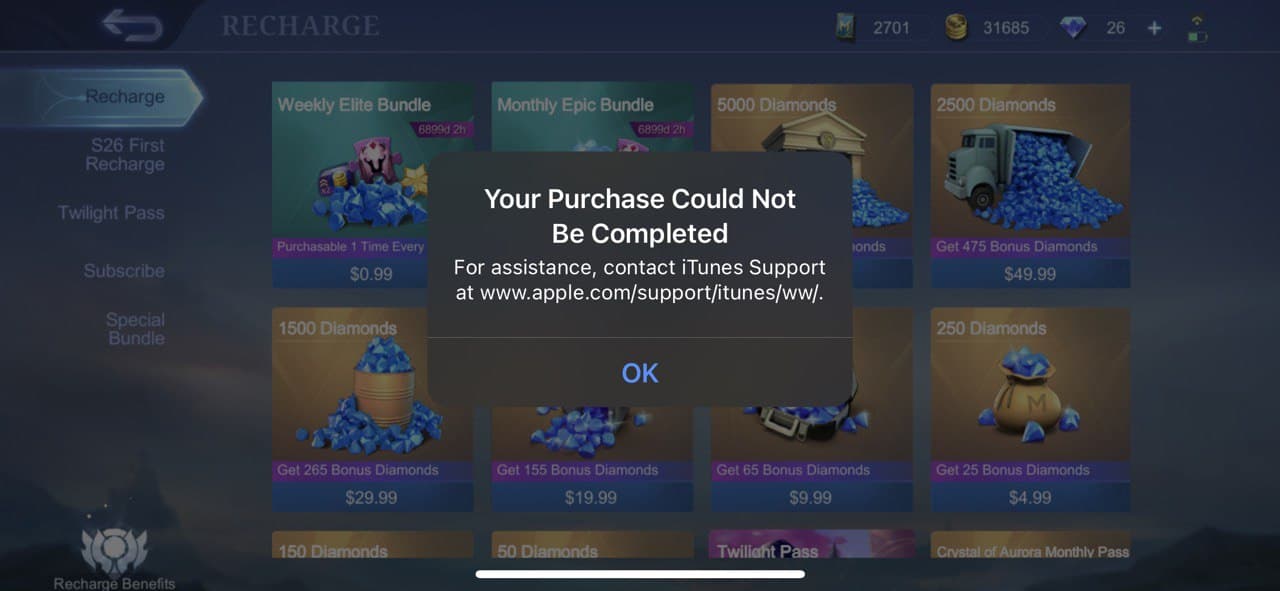 1- why i cant purchase any diamonds on Mobile legends bang bang?