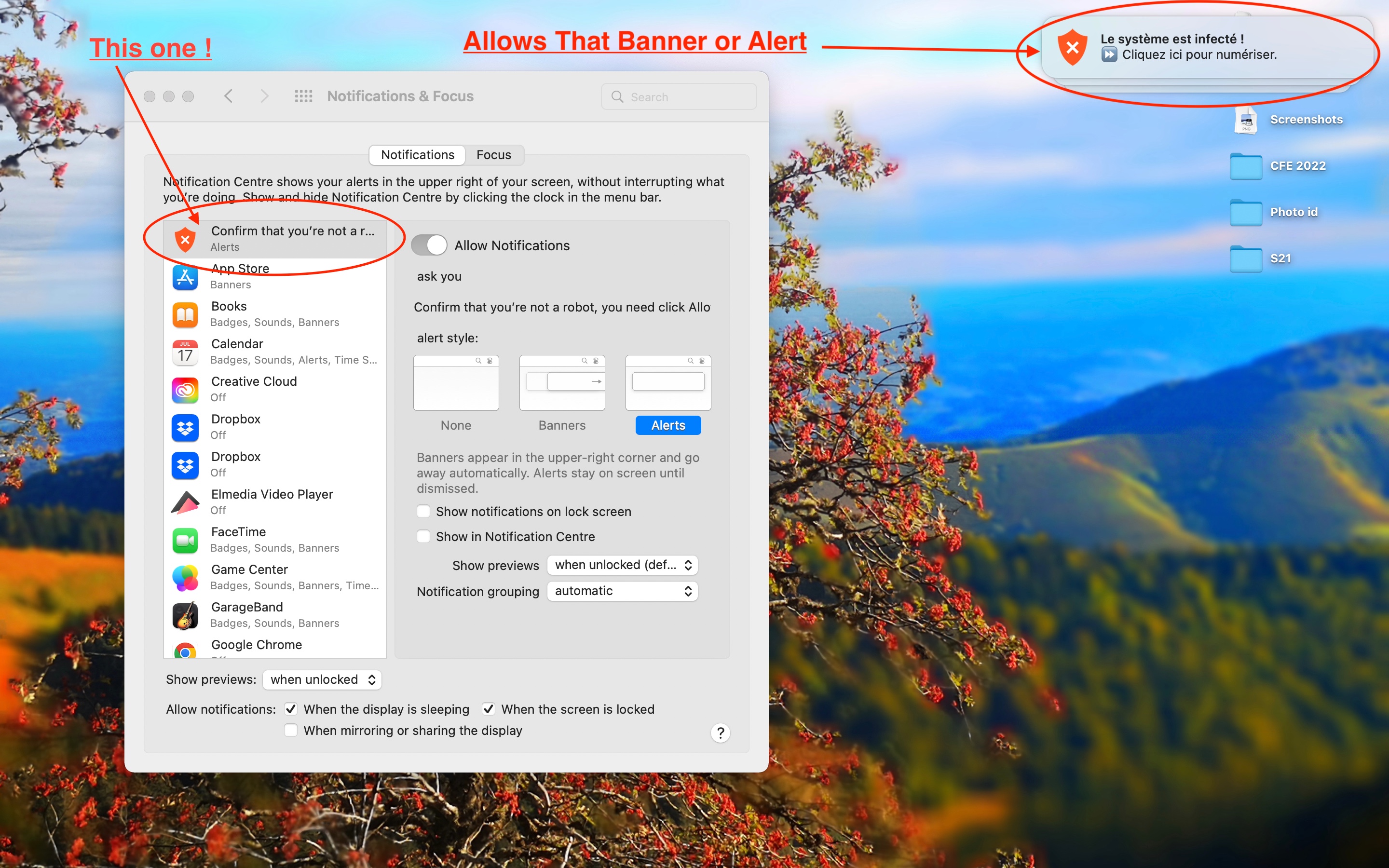 Banners or Alerts in notifications centre Linked to web threat ! How to get rid of it ?