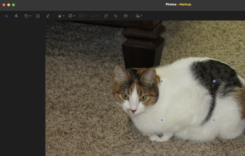 Trying to draw on a photo using Mark Up in Photos on my MacBook Pro (OS 13.0.1). When I click on the Draw symbol (2nd from left) & then try to draw a circle using my trackpad, nothing happens. I release & get 4 blue dots in the shape of a square. No idea what's up with that, no matter what I try, I can't draw a plain black circle around an object in my picture.