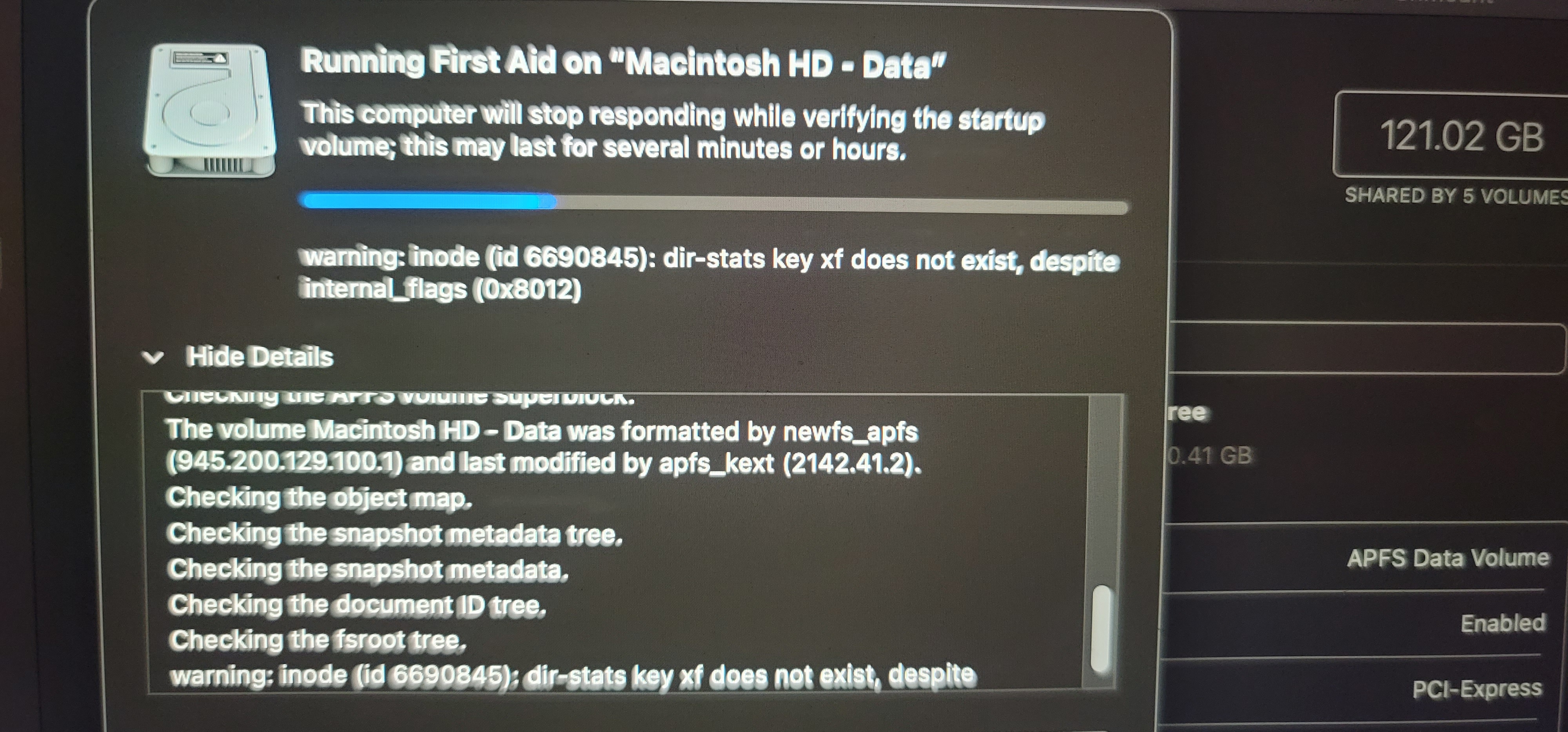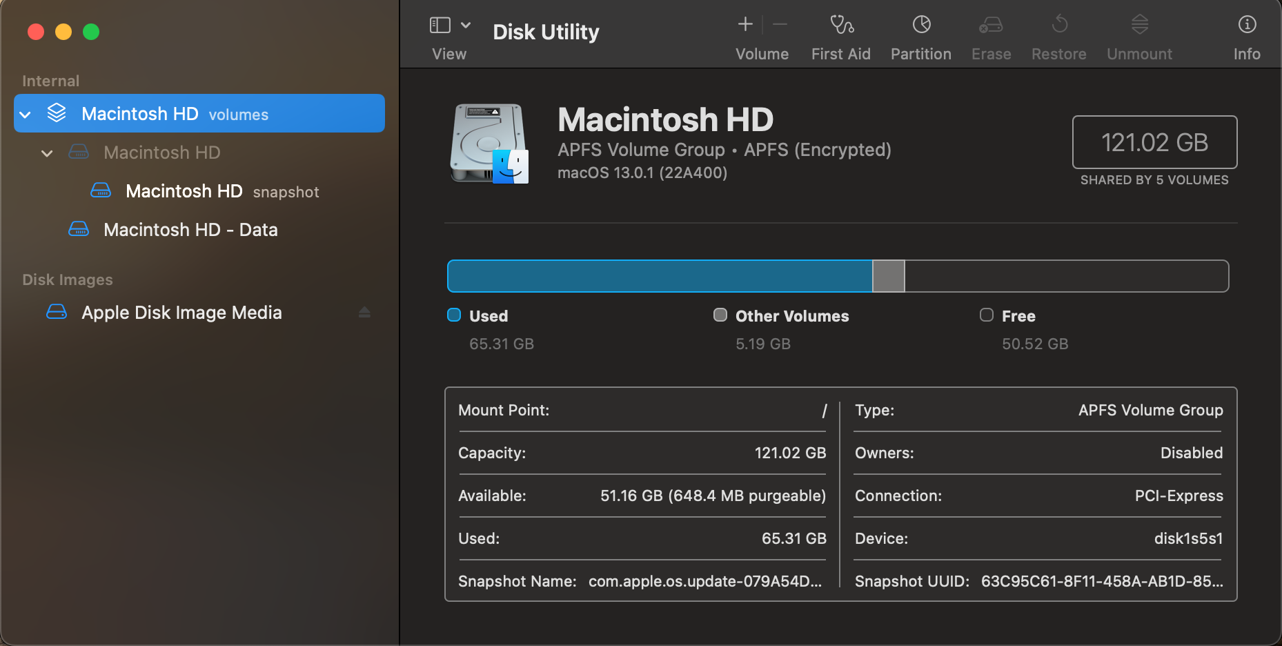 Hi, for some reason my hard drive only shows have storage capacity and why do I have 5 volumes?