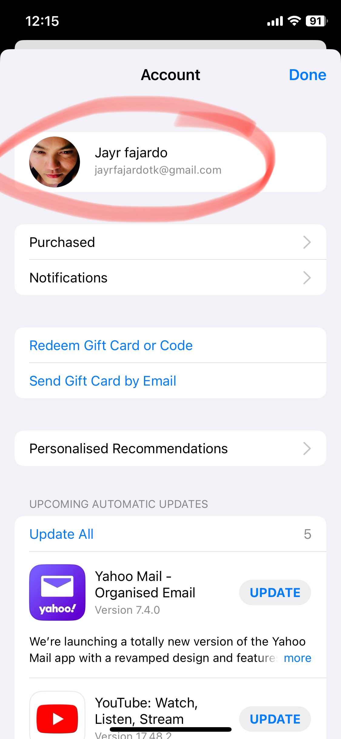 Different account in appstore.