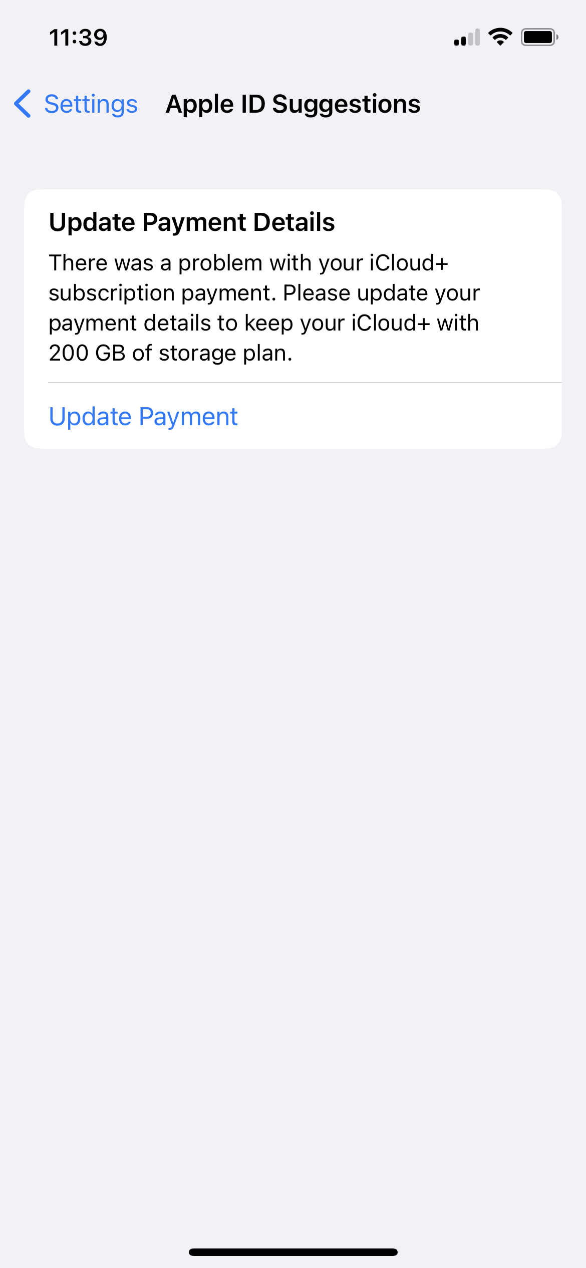 Recently I have been told that my iCloud storage payment keeps failing as the card details are incorrect, I have checked and updated these, I have also deleted and reloaded the payment card, I’ve also logged out of my Apple ID and back in. None have worked. There is no issue with the payment card, I.e it has no blocks on it, there is money in the account, the address matches the card details, etc