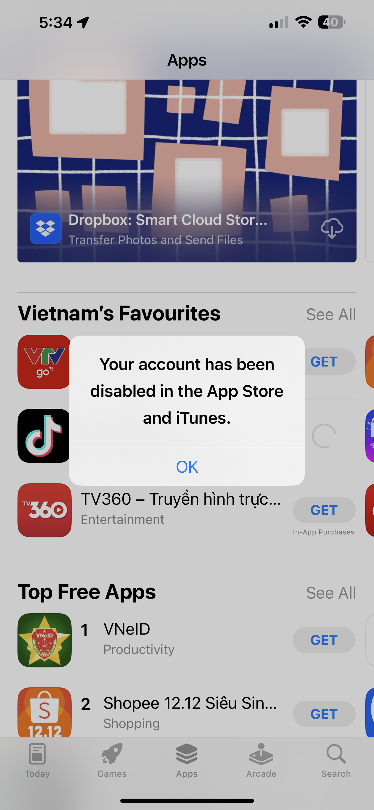 *From the support article: If a message says 'Your account has been disabled in the App Store and iTunes' - Apple Support