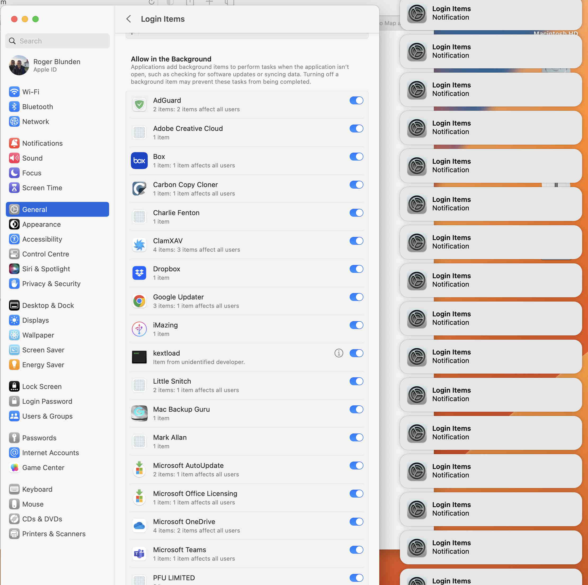 I deleted and inactivated all the apps in System Preferences/General/Login Items but "Login Items" notifications keep popping up. There is no app info in the notifications. Just says "Login Items"...