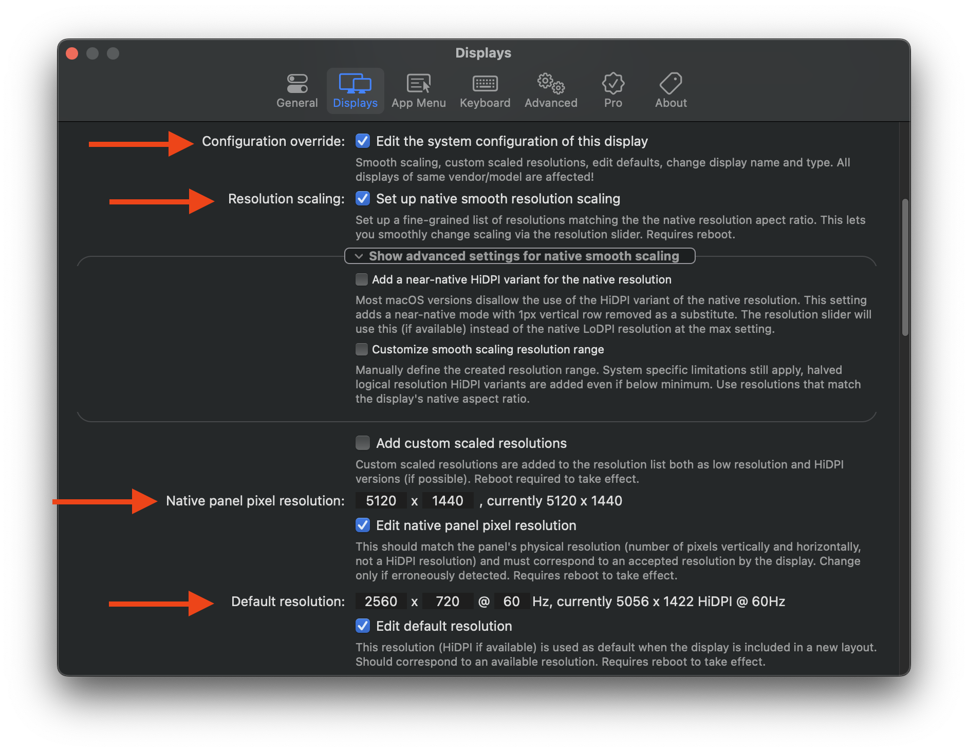 I was able to fix this issue for my 5120x1440 monitor with Better Display (https://github.com/waydabber/BetterDisplay): I had to hit these buttons under settings and after a reboot I had all the HiDPI resolutions I ever wanted... not in system settings though but in the Better Display menu. But once set you don't need to run Better Display in the background and it looks like it doesn't have any overhead like Better Dummy. Currently working on 4096x1152 which is the equivalent to Windows 125% scaling. Even on a 110dpi screen this looks great and from a performance standpoint runs perfectly well on my 2019 MacBook Pro with two external monitors attached. I really don't get it why apple doesn't enable these options by default.
