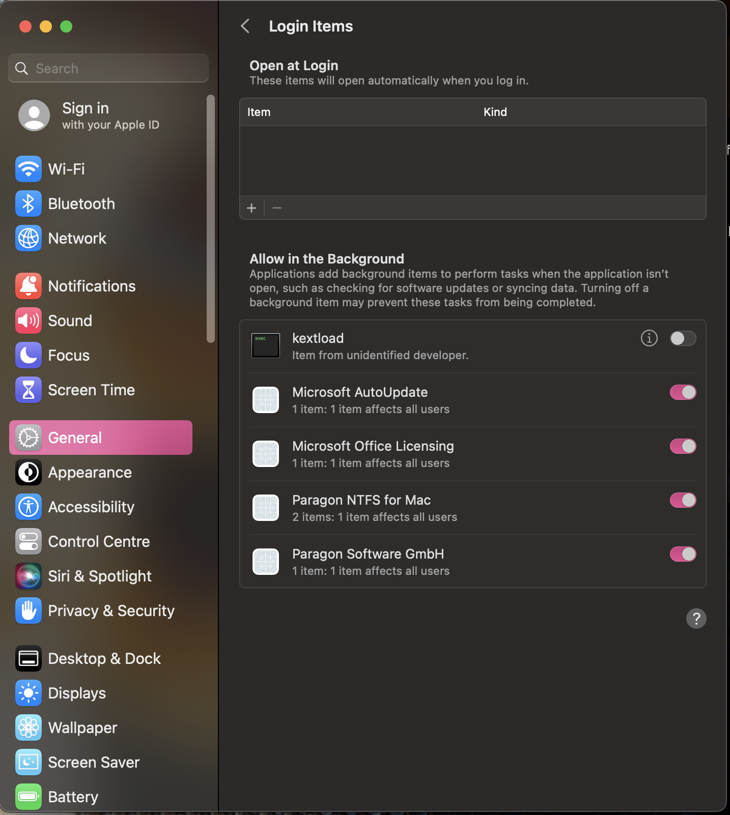 I'll see if I can find out what might be causing that entry to appear and how to remove it but it's not well documented by Apple and Ventura is so new not many people have run across an errant Allow in the Background entry they can't remove. Most of them are in those LaunchAgents / LaunchDaemon and this is something different related to kernel extensions. The command kextload is technically depreciated, meaning it's still there but is expect to be removed and developers should be using kmutil instead. So another clue as to the age of whatever it was that created this entry.
