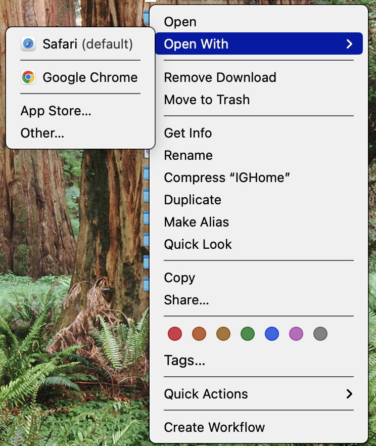 The default browser works for links within Emails, however it doesn't work from desktop URL shortcut (.webloc) files.