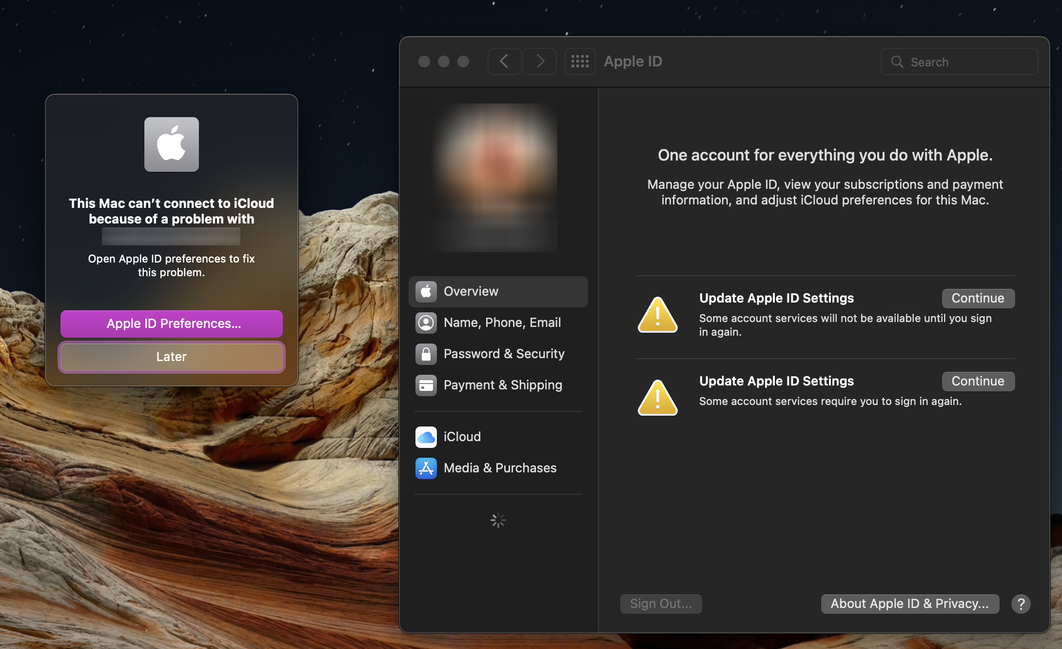 On this iMac, I am nagged that I need to "update apple id settings". Obviously, this is not possible since 12.6.2 is no longer supported on my account because I've enabled Advanced Data Protection. Either way, I try to log in and thus begins the endless for loop.