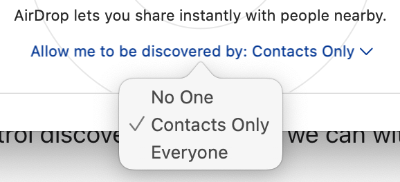 I got a popup today with a connection request listed only as by MAC address, probably a neighbor. I chose to ignore, but I should be able to control discoverability just as we can with Airdrop, so that I don't receive connection requests at all: